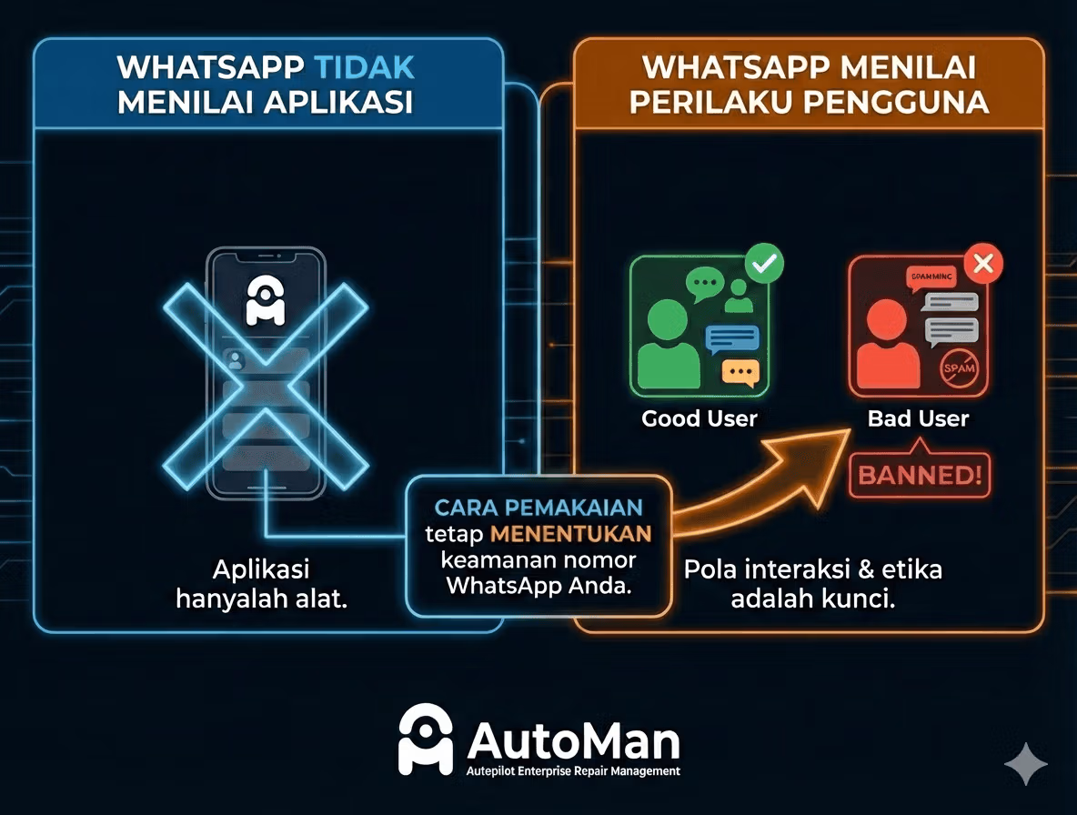 Artikel ini membahas cara menggunakan fitur WhatsApp di Automan dengan aman, sekaligus menghindari risiko banned nomor WhatsApp akibat kesalahan penggunaan.